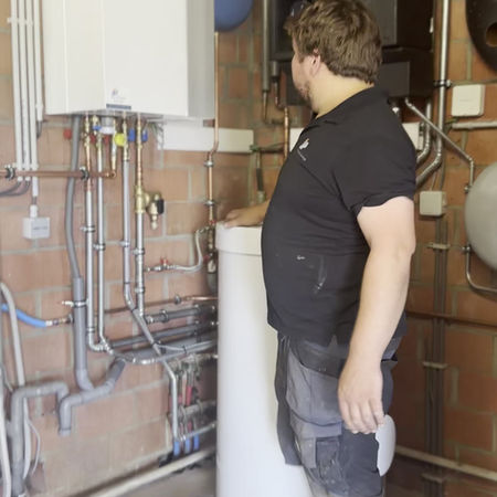 Hier werd ook een boiler aangesloten van Weishaubt van 150l met elektrische weerstand, dit wil zeggen dat later wanneer er zonnepanelen zouden geïnstalleerd worden de boiler door middel van een slim systeem gebruik zal maken van de overschot van opgewekte energie om het water te verwarmen. Hierdoor wordt er dus slimmer omgegaan met het overschot aan energie in plaats van deze terug te sturen naar het net.